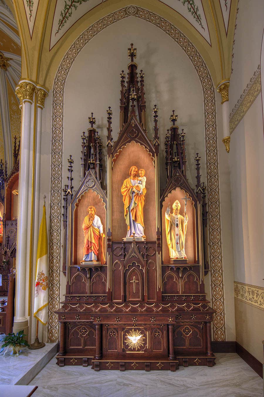 The church was not yet finished, but the parishioners who entered the doors for the first time on Easter morning witnessed all the magnificent changes that had taken place over the past eight months. There were tears of joy, huge smiles, and jaw dropping expressions on the faces of those attending. On May 3, 2025, the new Altar was blessed and dedicated in a beautiful ceremony. The side Altars arrived on August 29, 2025, and the HVAC unit covers will be finished within the next month. These final changes will complete the renovation.