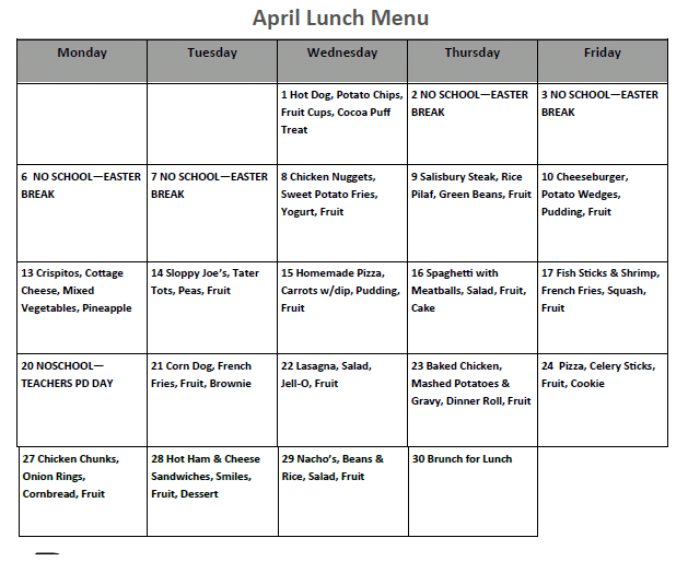 *All menu items are subject to change. This instituition is an equal opportunity provider. For information on Free and/or Reduced Lunch, click here.